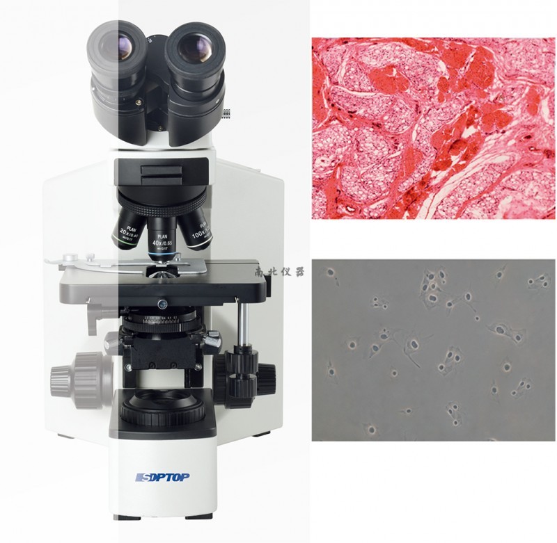 低手位粗微调同轴,粗调行程30mm,微调精度0.002mm,松紧调节装置和上限位装置,载物台托架组高度可调 |