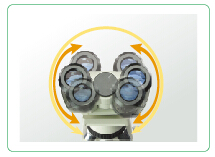 内倾定位,旋转柔顺,转换器内倾内定位,使操作空间更大,视野更开阔,更方便看到标本并保护物镜,高精度的机械加