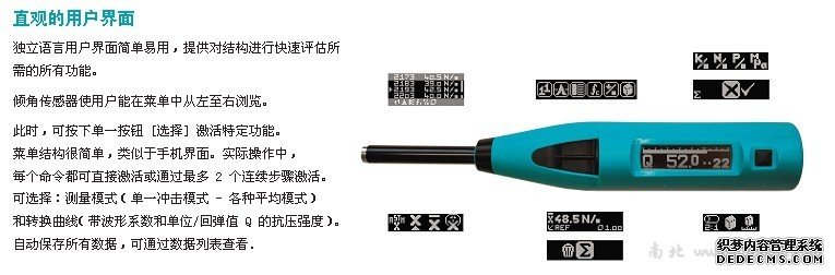 Q值回弹仪 SilverSchmidt 具有真实的回弹值、无以伦比的可重复性和直观的操作,这些功能都整合在一个坚固、符合人体工程学的仪器中。 传统回弹仪有以下不足之处 1. 回弹值受冲击角度的影响。 2. 回弹值受内部摩擦的影响。 3. 密封不够紧,导致准确性降低。 SilverSchmidt 的设计和高质量的构架解决了这些问题,并使回弹仪测试比之前更快更准确。 人体工程学:SilverSchmidt 非常趁手。任何情况下都可以非常清楚的看到显示数据。 坚固:双层密封防止灰尘和污垢渗透到仪器内部。 冲击角度性:在冲击点临近处测量弹击锤的前向速度和回弹速度。回弹值无需角度修正。 测量准确性和可重复性:新测量原理和重新设计的结构使 SilverSchmidt 的性能超越了前一版本。 目标评估:可用本仪器轻松收集大量测试点数据,并根据统计标准进行自动评估。 PC 连接:"Hammerlink"软件允许通过 USB 上传数据。 也可通过本连接进行固件升。