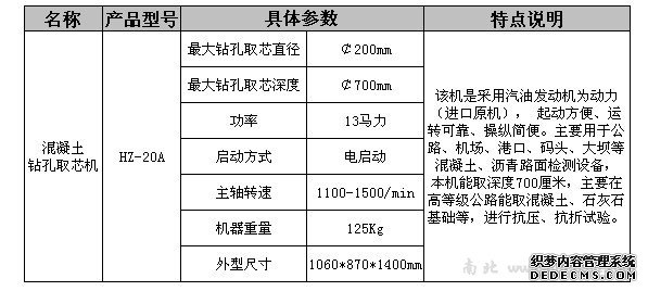 1、该机是采用汽油发动机为动力 2、起动方便、运转可靠、操纵简便 3、主要用于公路、机场、港口、码头、大坝等混凝土、沥青路面检测设备 4、本机能取深度700厘米、主要在高等公路能取混凝土、石灰石基础等、 进行抗压、抗折试验