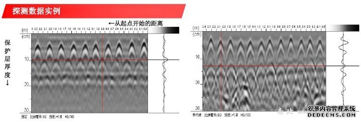 NJJ-105手持式雷达 混凝土建筑锁定加固 钻孔取芯 空调设备安装 电气设备安装 混凝土建筑物的改建维修 混凝土建筑 自来水管道施工 混凝土桥梁完工后的检测 其他 小巧・轻便 主机与天线一体化,更小巧,约1.1kg重,可单手进行操作。 从金属到非金属皆可探测 利用雷达方式,不仅可以探测到钢筋等金属,也可探测到PVC管,空洞等非金属。(对于非金属探测图像的分析需要熟练掌握) 数据的保存・回放 1次探测可以保存相当于15m探测距离的数据并可回放。 可以进行无线打印 利用IrDA,无须连线,使用黑白打印机(须另购)可以进行简单的直接打印操作。 实时表面波处理 可以实时进行除去表面波的操作,提高了探测速度。加上固定表面波,可以根据探测中的数据对表面波进行设定,因此具备操作简单和探测的特点。 可读取和记录用于分析数据的坐标的位置 探测后,根据XY坐标,读取和记录钢筋的位置、深度(多达42个位置)