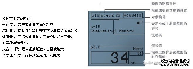 瑞士5S钢筋扫描仪 1、 检测钢筋条的位置和方向 2、 检测混凝土保护层厚度 3、 检测确定钢筋直径 1、 外形紧凑且使用方便的主机,带背光 2、 可进行快速数据传输和编辑的 ProVista PC 软件 3、 能够以公制或英制单位进行操作 4、 采用无损脉冲感应方法