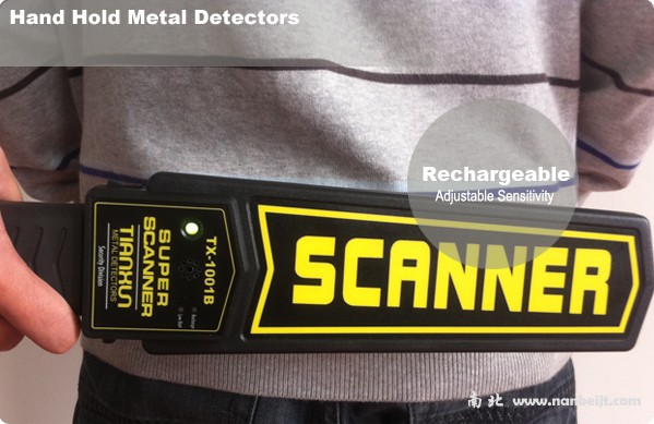 TX-1001B我公司自主研发的超高灵敏型多功能手持式金属探测器,是一款高性能专为安防设计的金属探测器。与传统探测器相比:探测区工作面的特殊设计,探测面积大、扫描速度快、灵敏度。外壳采用ABS工程塑料一次铸成,抗击能力强、工艺精细、重量轻便于携带等特点。可探测被隐藏在人体身上的种类的金属物体,包括手枪、小型刀具、箱形刀架、饰,电器元器件等。适合在机场、海关、码头、银行、建筑、监狱、体育场、,学校等场所使用。该产品使用大规模集成电路,可完全配用9V充电电池(选配件),低电压指示,LED灯光鸣声报警和振动报警,是检查非法物品不可多得的理想产品。