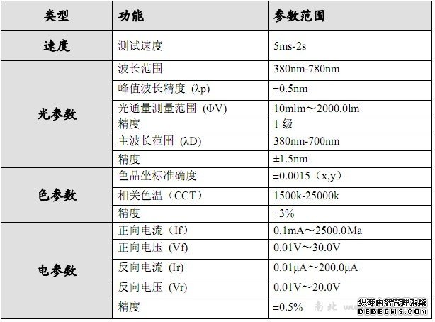 根据色品坐标、相关色温、主波长或光通量设定分档 配有多种LED夹具,不同规格可定做夹具;适合1W/3W/10W20W等不同大功率LED分选测试数据自动保存为Excel文件,方便数据分析