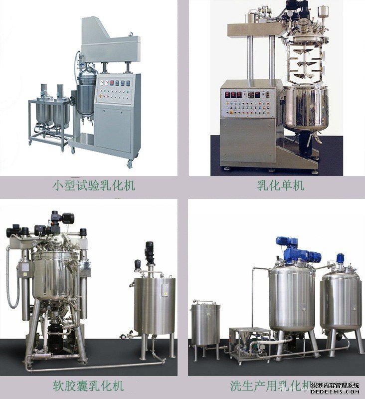 乳化机就是通过与发动机连接的均质头的高速旋转,对物料进行剪切,分散,撞击。这样物料就会变得更加细腻,促使油水相融。广泛应用于化妆品,沐浴露,防晒霜,等很多膏霜类的产品都要用到乳化机。食品行业中的酱,果汁等。制药行业中的软膏。石油化工,油漆涂料油墨等都会用到乳化机。