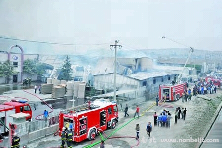 5月30日上午11点25分,黑龙江路与莲花山路交叉路口附近的韩丰包装厂内发生火灾。“现场的火势比较大,老远的地方就能看到黑烟 ,现场有不少消防车。”记者赶到现场看到,有很多消防车在现场灭火,还有消防人员锯开仓库铁皮外墙进去灭火,与车间仅有一路之隔的是日本纺织品质量技术中心,它的一个实验室损失严重,据了解暂无人员伤亡。据统计,此次火灾过火面积达到上千平米,大火疑为电路起火所致。