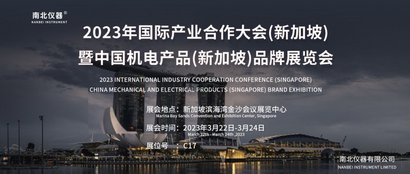 为推进高水平对外开放,加快建设贸易强国,南北仪器积极相应政策,精准开拓NANBEI品牌的国际市场,南北仪器将于2023年3月22日-3月24日参加2023年国际产业合作大会(新加坡)暨机电产品(新加坡)品牌展览会2023 International Industry Cooperation Conference (Singapore) China Mechanical and Electrical Products (Singapore) Brand Exhibition