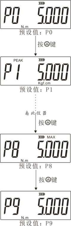 *Note7:当施力扭矩值达到满量程110%时,红灯亮,蜂鸣器长鸣,屏幕出现“Er0”,请停止施力并按“C”归零。
