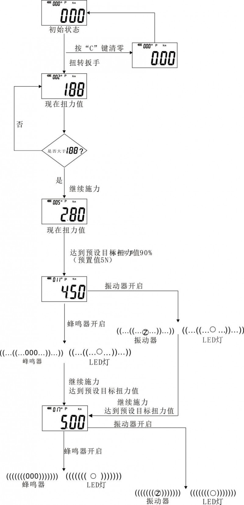 1.2.5 蜂鸣器、LED和振动器提示目标值;