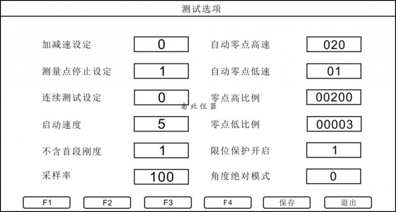 i、零点高比例/零点低比例:这两个参数为自动原点的力值判定。零点高比例为“200”,即这个力值是满量程*200/10000,即满量程的2%。零点低比例为“3”,即这个力值是满量程*3/10000,即满量程的0.03%。启动自动原点后,当力值接近满量程的2%时,仪器会在这个力值停顿几秒后依据零点低比例的力值停在自动原点的位置。