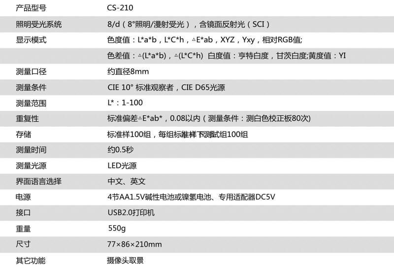 CS-210精密色差仪技术参数: