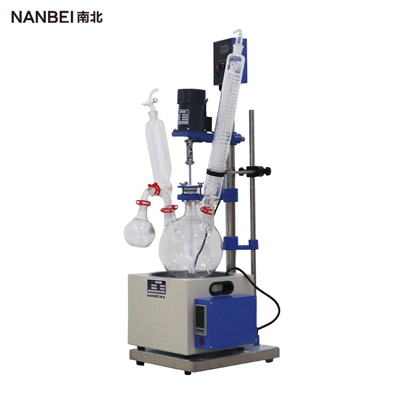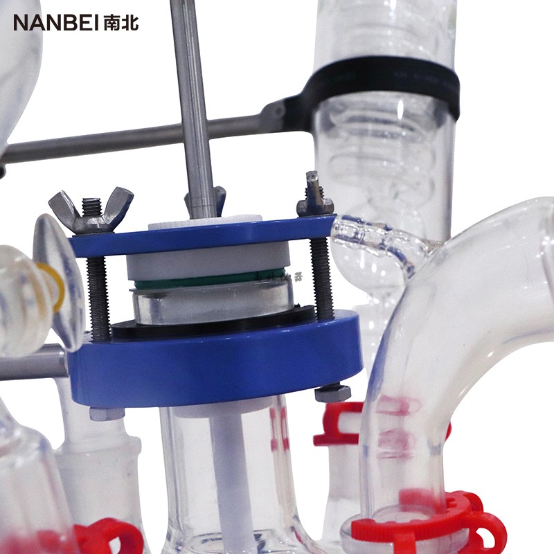 | 南北仪器单层玻璃反应釜具有电动恒速搅拌系统、冷凝、滴加系统、加热浴锅。在搅拌物料的同时,浴锅对釜内物料进行加热,在真空条件下可以提高蒸发效率(需连接真空装置),溶媒蒸汽经玻璃冷凝盘管时冷却成液体(需连接冷却装置),可回流到釜内,也可通过回流弯头下部阀门进行回收。反应完毕,物料可从釜底的侧出料口放出。