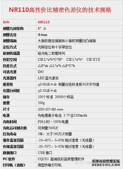 NR110是依据CIE(照明委员会)的相关标准、**标准研发的精密仪器。该色差仪采用全新关键元器件,经精心设计,具有稳定、操作简单、易学易懂、经济实惠等特点。