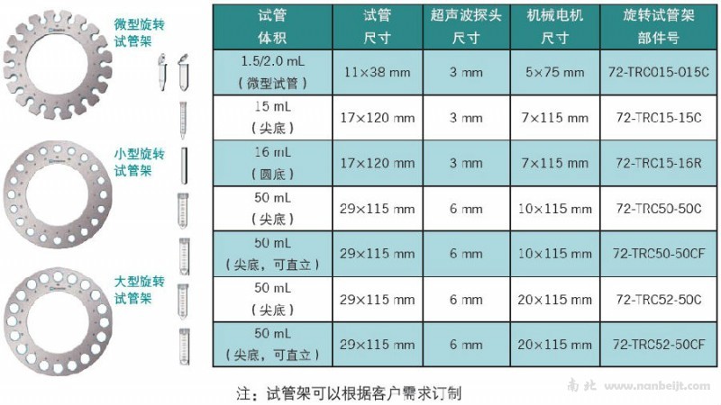 20位试管支架;3mm超声波探针;7x115 mm 锯齿机械刀头;16mL圆底试管(40个/包) |