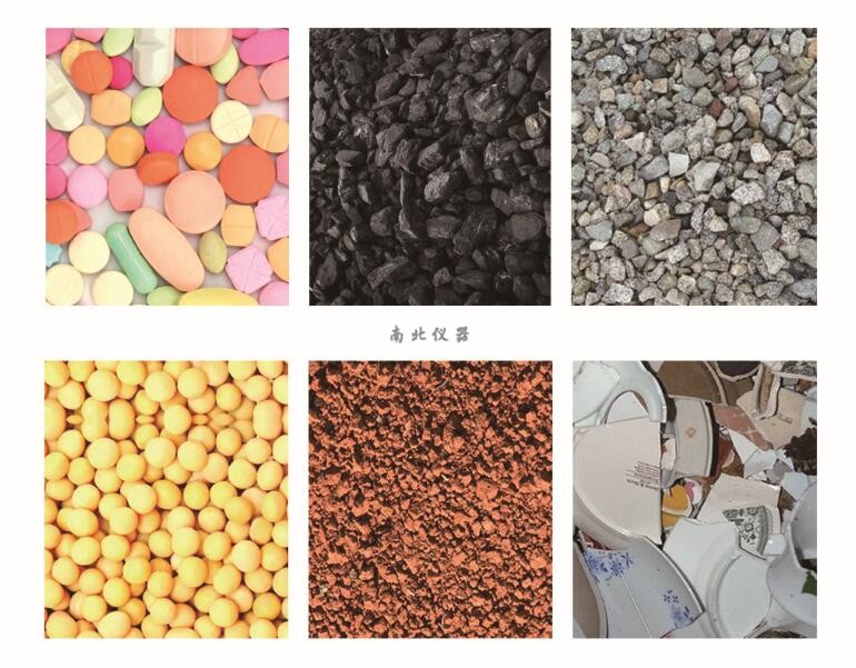 *土壤、煤、焦炭、岩石矿物 、玻璃、 植物、农产品、材料、建筑原料、药品、陶瓷、食品、香料、水泥等