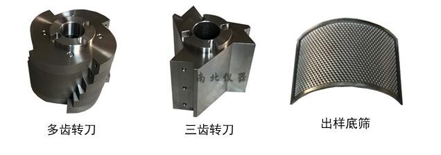 样品通过防反溅的进样料斗进入研磨室内,通过旋转的转刀与固定的切割棱之间的剪切切割作用,对