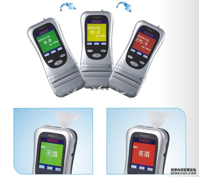 1、吹气过程动态显示,测量结果放大显示,自动背景颜色变化功能,测量结果显而易见