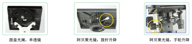 阿贝聚光镜,N.A.=1.25 可变光阑,手轮升降 |