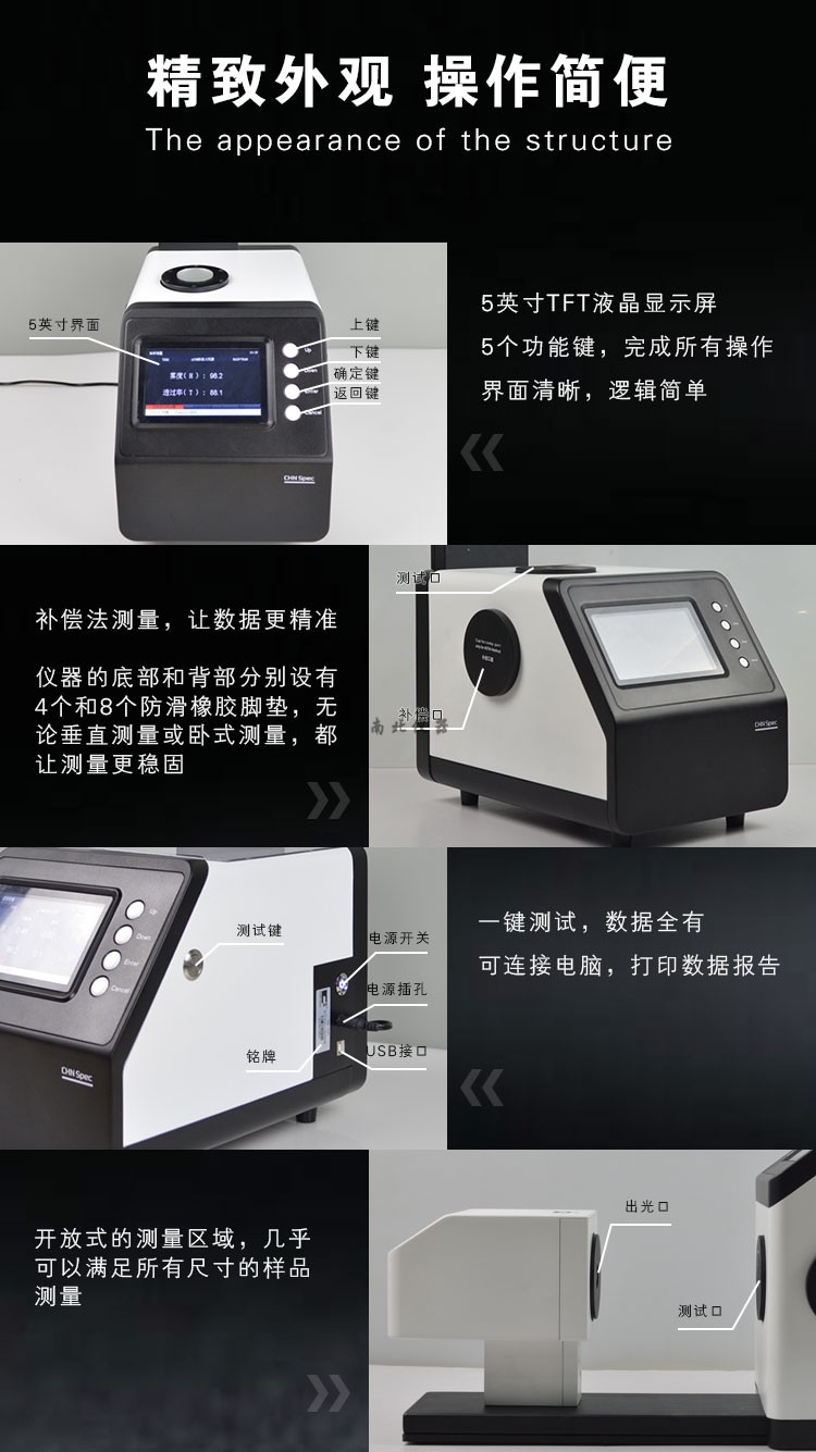 一、仪器介绍1、符合以下测试标准:GB/T 2410标准、ASTM D 1003标准、ISO 13468标准、ISO 14782标准